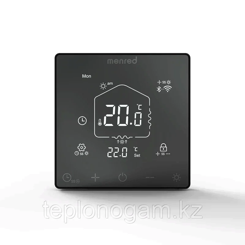 Термостат MENRED RТ52.32, предназначенный для использования в системе подогрева полов, предназначен для регулирования температуры в помещении в соответствии с заданными значениями температуры. Экран акриловый с сенсорными кнопками.
